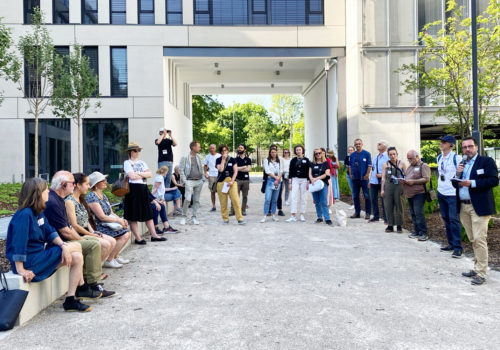 Am 20. Mai 2022 fand der vierte Baulückenspaziergang des AIT-ArchitekturSalon München statt. Vor einer großen Gruppe interessierter Gäste stellten Planer*innen und Entwickler des HOFMARK Ihre Projekte bei herrlich sommerlichem Wetter vor.