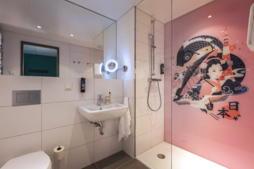 Wer in Deutschland nach japanischer Kultur und Lebensart sucht, wird in Du?sseldorf schnell fu?ndig. Hier hat sich in der Hauptstadt Nordrhein-Westfalens abseits der Altstadt und Ku?nstlerszene eine lebendige japanische Gemeinde etabliert. In diesem inspirierenden Umfeld wurde 2021 das niu Tab fertiggestellt. In den Sanitärwa?nden hinter den schlicht-eleganten TECEnow Beta?tigungsplatten, die sich in das junge urbane Design-Konzept einfu?gen, verbirgt sich das Vorwandsystem desselben Herstellers.