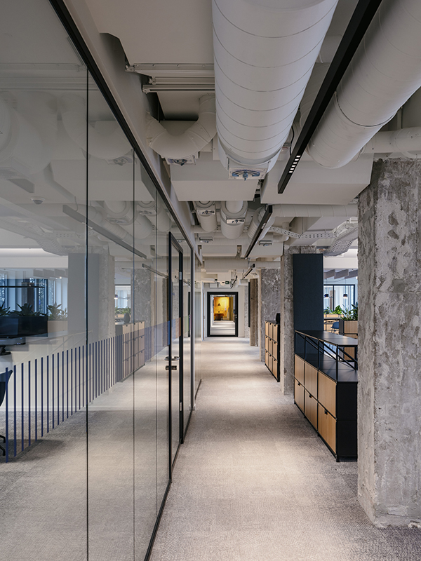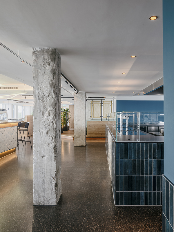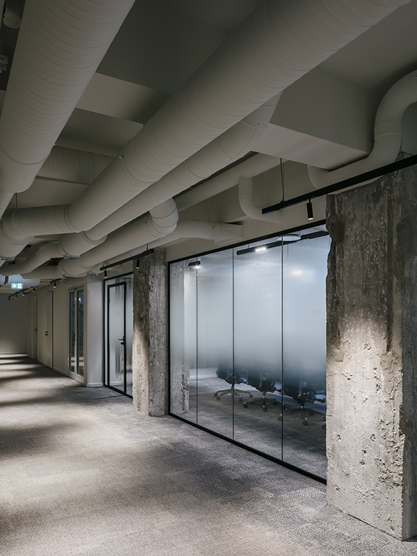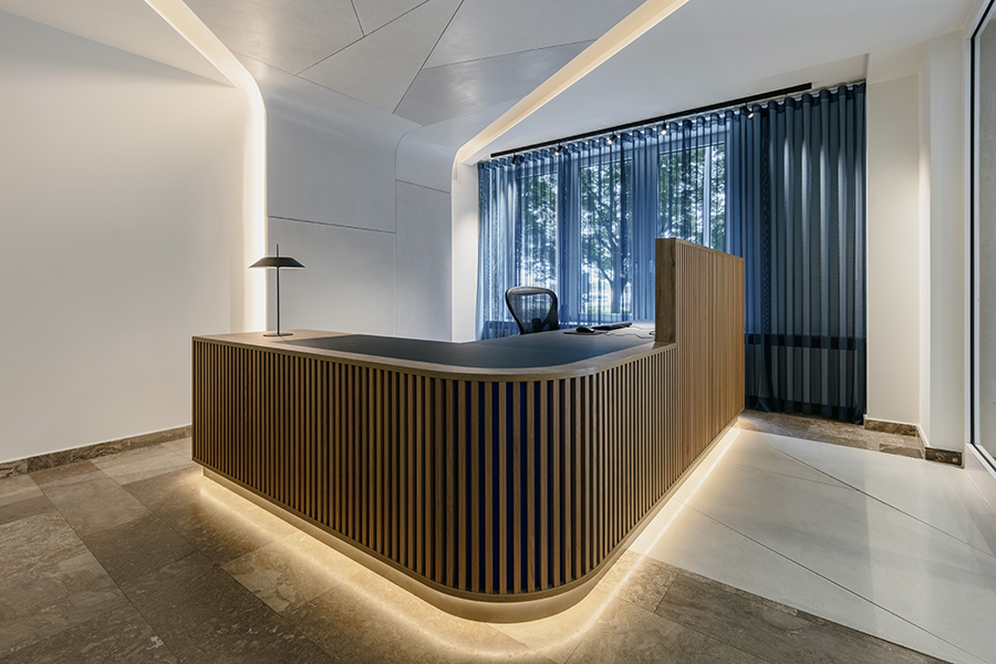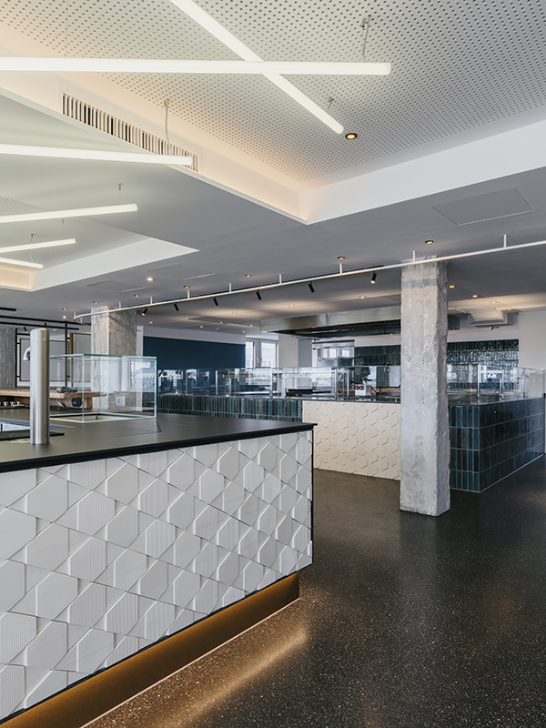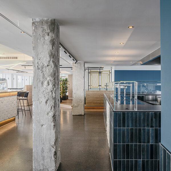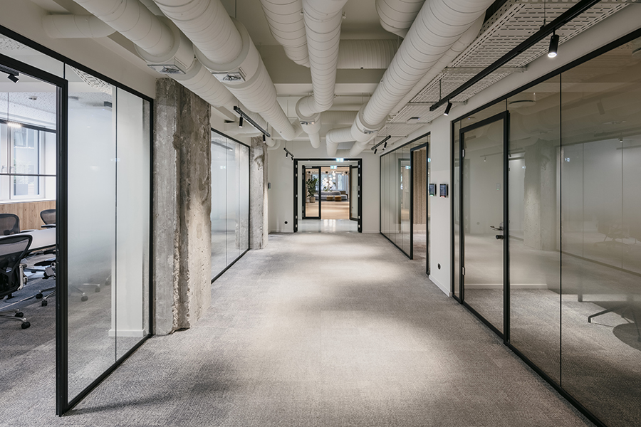 Um für die Mitarbeitenden von BAT Germany ein zukunftsfähiges Arbeitsumfeld zu schaffen, erhielt das Architekturbüro Ratschko den Auftrag, das an der Hamburger Alster gelegene Bestandsgebäude aus den 1930er-Jahren grundlegend zu modernisieren. Die zuvor von Zellenbüros und langen Korridoren geprägte Struktur wich einer offenen, multifunktionalen Bürolandschaft mit 8500 Quadratmetern, die Activity-Based-Working unterstützt. Bereits 2008 hatte das Architekturbüro kleinere Anpassungen vorgenommen, nun jedoch wurde das Konzept radikal weitergeführt – mit klarer Wirkung auf die Unternehmenskultur. „Früher sagten Mitarbeitende: ,Ich gehe in mein Büro‘ und meinten ihr Einzelbüro. Heute bezeichnen sie damit die gesamte Fläche“, erläutert Kai Ratschko. Offene Arbeitszonen mit weiten Blickachsen, flexible Teamräume, Telefonboxen, Konzentrationsarbeitsplätze, Sitzgruppen und gemütliche Alkoven ermöglichen unterschiedliche Arbeitsweisen. Herzstück jedes Geschosses ist eine Teeküche, die Begegnung und Austausch fördert. Orientierung schaffen farbliche und materielle Zonierungen: Kommunikationszonen sind in Blautönen akzentuiert, während Glastrennwände, Regelsysteme und Nischen Rückzug und Sichtschutz ermöglichen. Sichtbar belassene Haustechnik sowie freigelegte Betonstützen und -wände setzen einen rohen Kontrast zu den neuen, maßgefertigten Möbeleinbauten. js