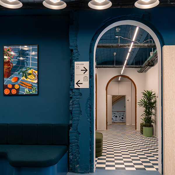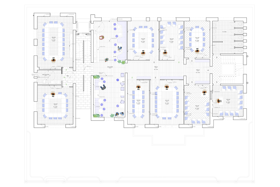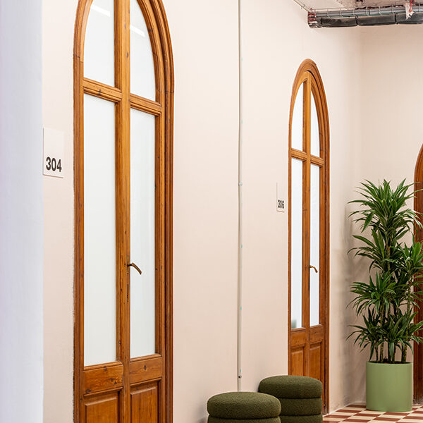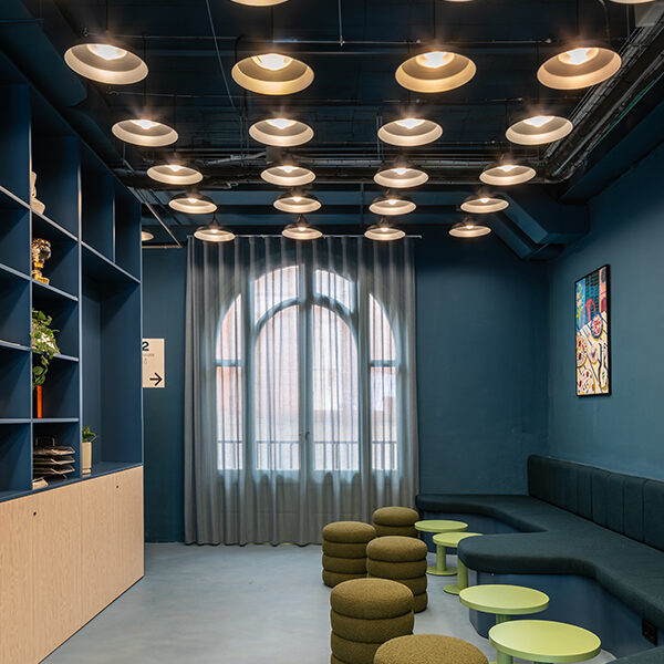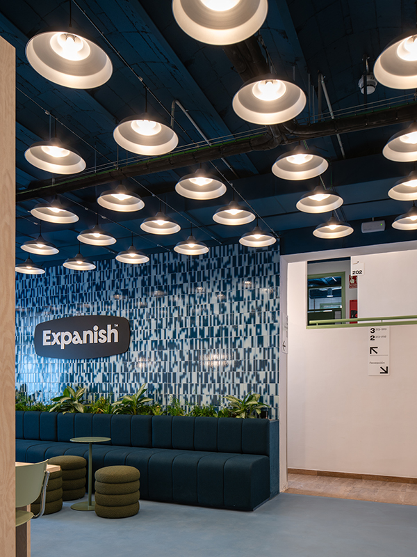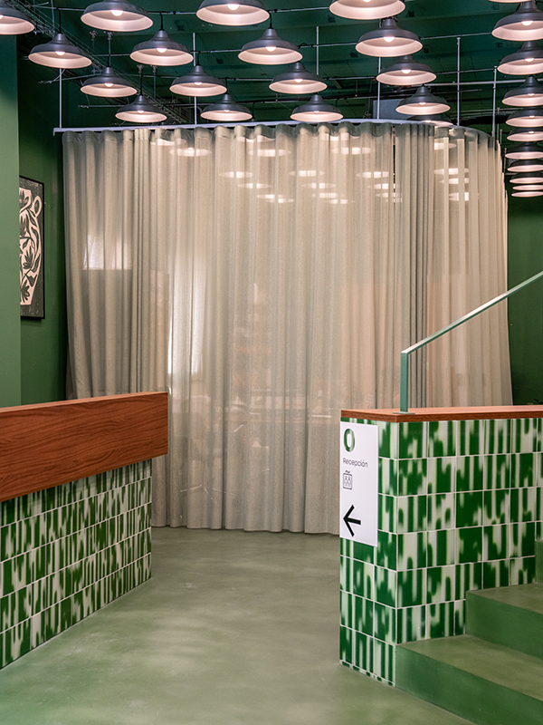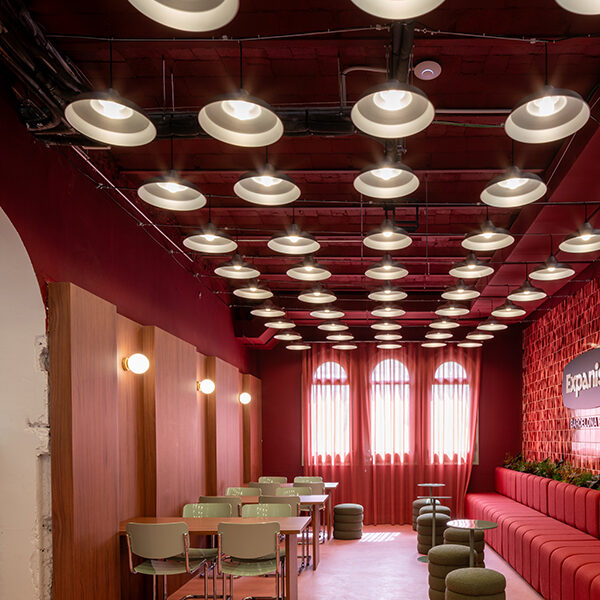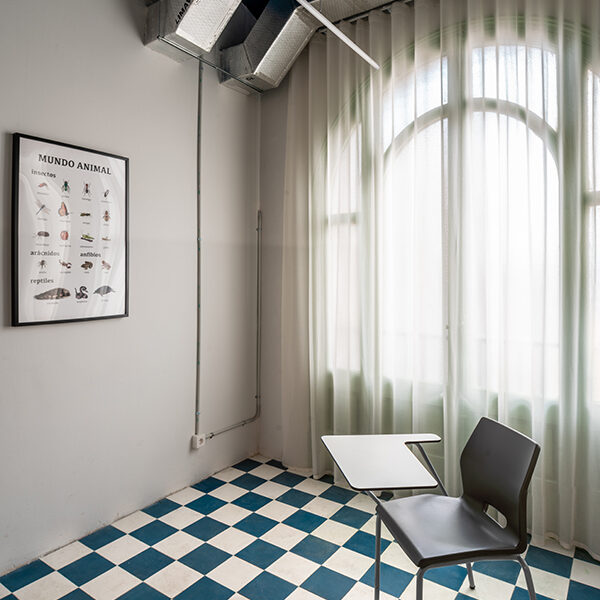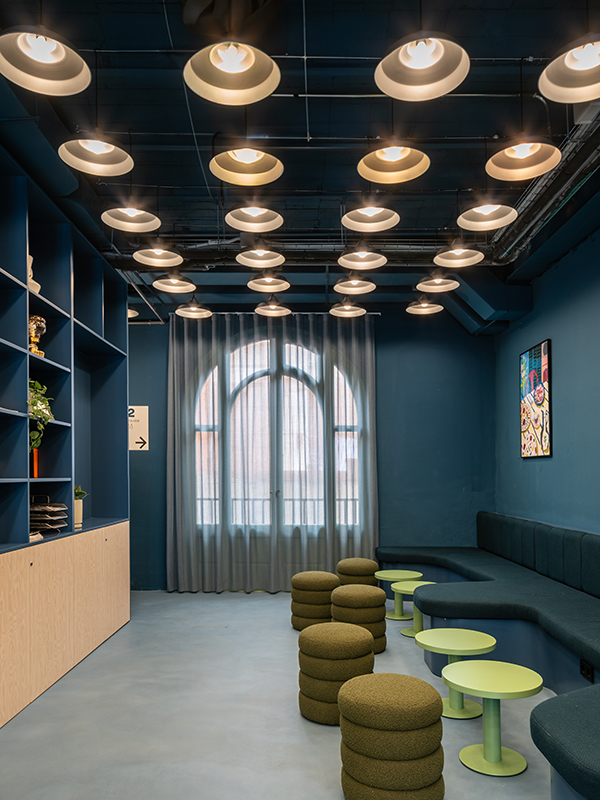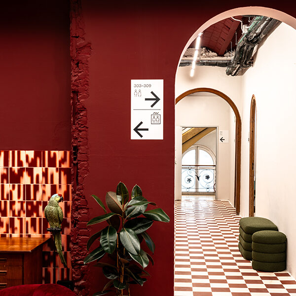 Keramikfliesen mit nuancierten Tonabstufungen, darüber ein Gewölbe, deckend im jeweiligen Geschosston gefasst: Bereits im Erdgeschoss wird deutlich, dass hier nicht Bestand und Umbau gegeneinander ausgespielt werden, sondern die Materialität als verbindendes Element wirkt. In der Casa Degli Italiani in Barcelona wurden vorhandene Holzbalkendecken, Gewölbe und Schmuckdetails behutsam freigelegt, ergänzt und restauriert, ohne die Spuren der Zeit zu nivellieren. „Unser Ziel war es, einen respektvollen Dialog zwischen Alt und Neu zu schaffen“, erklärt Alberto Eltini. „Es geht nicht darum, die Vergangenheit auszulöschen, sondern sie in die Gegenwart zu integrieren, durch eine Architektur, die das angesammelte Gedächtnis des Ortes bewahrt und stärkt.“ In dem im späten 18. und frühen 19. Jahrhundert errichteten Gebäude im Renaissancestil mit eklektischen Einflüssen entstand unter der Leitung von Alberto Eltini und Marina Martín ein Lernort für die Sprachschule Expanish. Das Raumprogramm greift lokale Referenzen auf: Die Gemeinschaftszonen heißen „Tapas“ und funktionieren als kommunikative Table-Settings, während die „Siesta Spaces“ kleine Rückzugsorte im Tagesablauf markieren. Die Farbdramaturgie führt geschossweise durch das Haus – im ersten Obergeschoss ein Schachbrett aus Zementfliesen in Blau und Weiß, im zweiten in Weiß und Rot. Farbige Beläge und monochrome Anstriche rahmen Wände und Decken. Maßgefertigte Möbel und Grünpflanzen halten die Eingriffe präzise und weitgehend reversibel. js