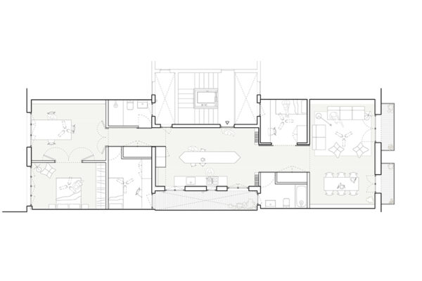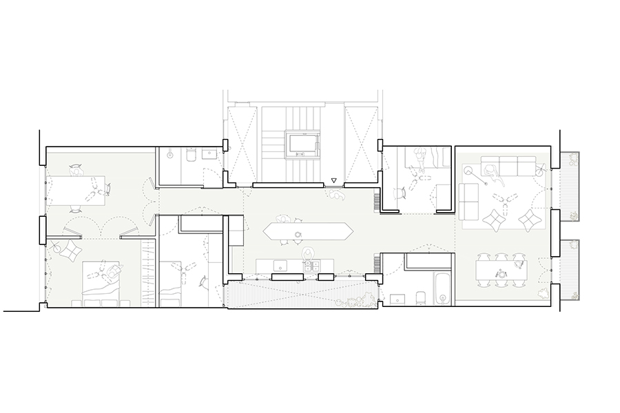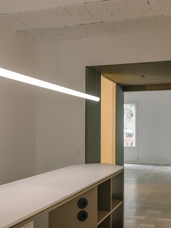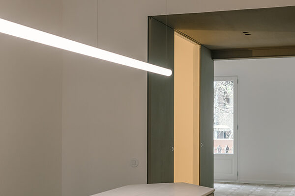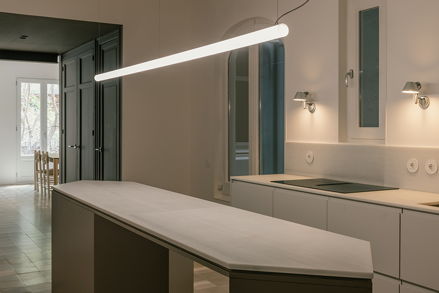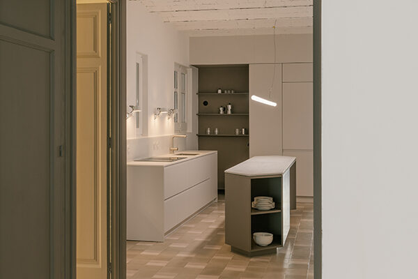 Bestand neu gedacht: Mit der umfassenden Sanierung eines 115 Quadratmeter großen Apartments in Barcelonas Viertel Eixample Esquerra zeigt Metronom, wie sich ein typischer Grundriss des Quartiers sensibel und zugleich zeitgemäß weiterentwickeln lässt. Ausgangspunkt ist eine Wohnung in einem Gebäude aus den 1930er-Jahren, deren räumliche und konstruktive Bedingungen stark durch eine überdimensionierte Aufstockung aus den 1970er-Jahren geprägt sind. Da strukturelle Eingriffe ausgeschlossen waren, entwickelte das lokal ansässige Planungsteam eine Neuordnung, die Licht, Blickbezüge und Großzügigkeit in den Mittelpunkt stellt. Statt den langgestreckten, von einem zentralen Korridor bestimmten Wohnungstypus beizubehalten, öffnet der Entwurf die Mitte des Grundrisses und schafft eine fließende Abfolge gemeinschaftlich genutzter Räume zwischen Straßen- und Hoffassade. So entstehen neue Querbezüge, mehr Transparenz und eine deutlich stärkere Verbindung zwischen Innen- und Außenraum. Die Küche bildet dabei das Herzstück der Wohnung: Als maßgefertigter, zentraler Raum mit skulpturaler Insel wird sie nicht nur funktionaler Mittelpunkt, sondern auch sozialer Treffpunkt. js