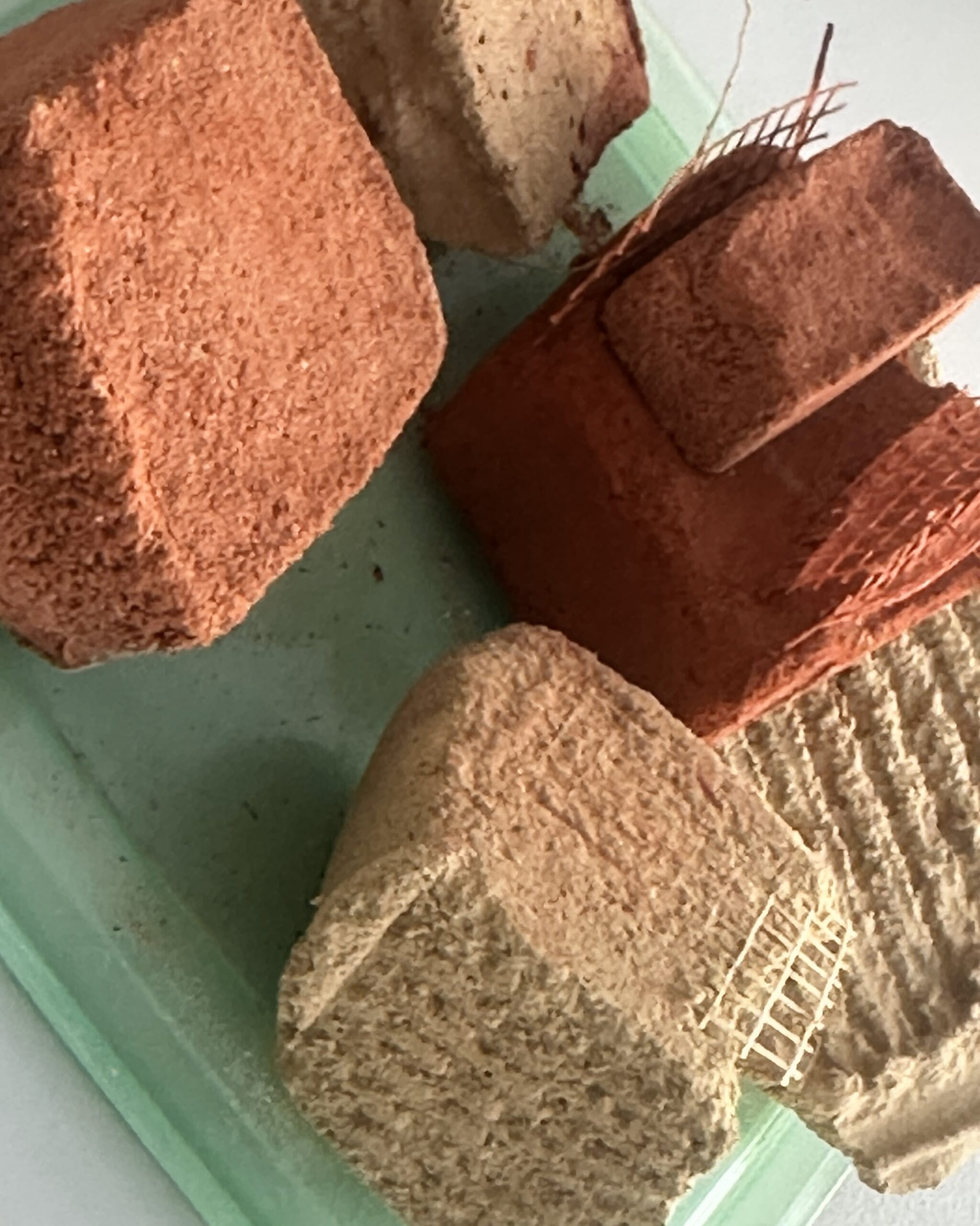 Ein zentraler Themenstrang der Ausstellung ist das tragende Lehmmauerwerk. Bachelorstudierende der Architektur der TH Lübeck entwickeln Projekte für den genossenschaftlichen Wohnungsbau in Schleswig-Holstein. Parallel dazu mit der annähernd gleichen Aufgabenstellung situieren ein Teil der Masterstudienden ihre Vorschläge dazu in Dakar. Geplant werden von allen mehrgeschossige Wohngebäude in tragendem Lehmsteinmauerwerk bis zu einer Gebäudehöhe von etwa 15 Metern. Der Rhythmus des Bauens – das Setzen, Schichten und Wiederholen der Lehmsteine – wird dabei selbst zum gestaltprägenden Element und zur räumlichen Ordnung. Der Vergleich unterschiedlicher klimatischer, kultureller und urbaner Kontexte macht sichtbar, wie sich ein gemeinsames konstruktives Prinzip in unterschiedlichen räumlichen Rhythmen manifestiert.