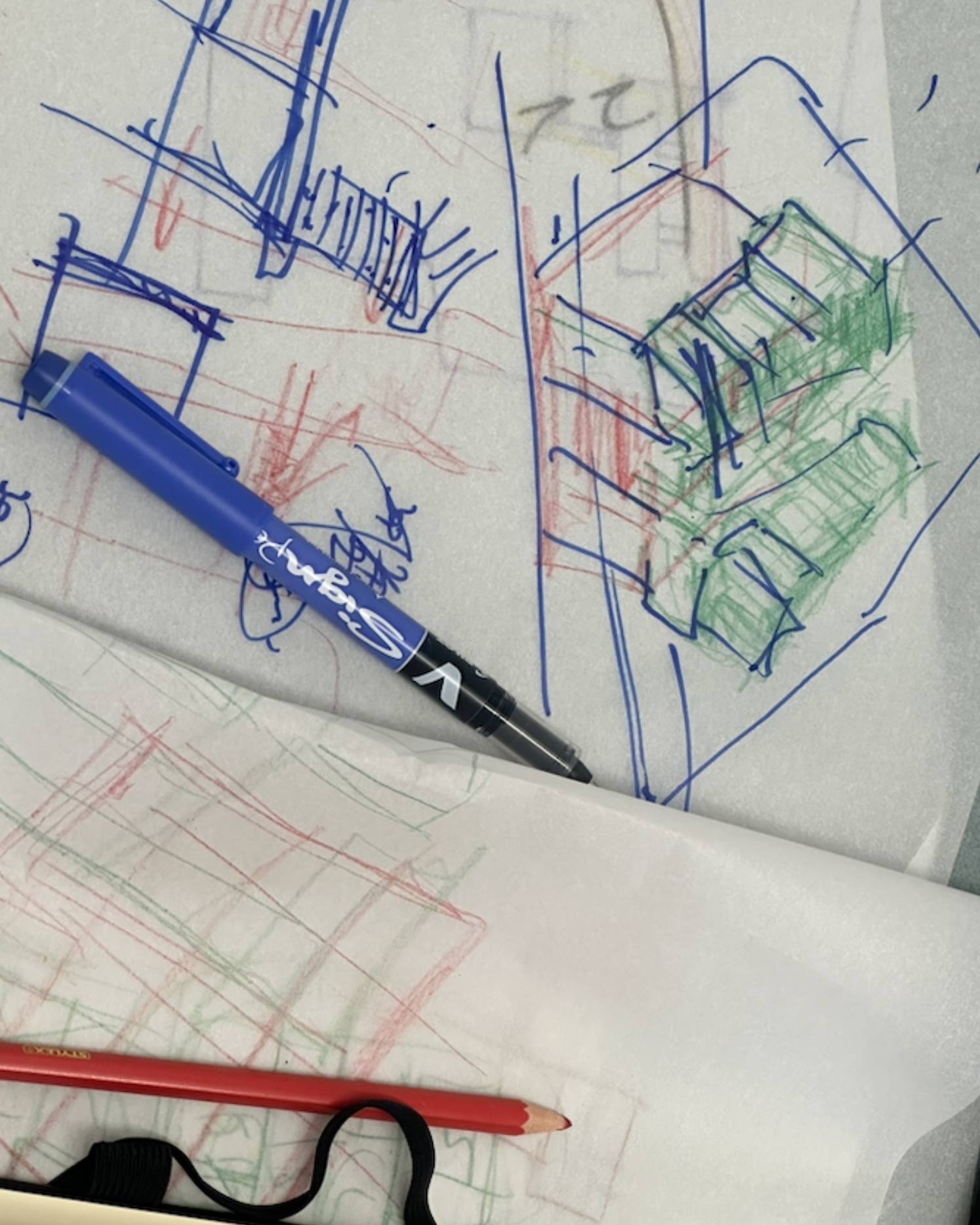 Studierende der Nachhaltigen Gebäudetechnik der Technischen Hochschule Lübeck üben sich im Fach Gestaltung, Raum als organisierten Prozess zu verstehen. Ausgangspunkt ist eine ehemalige Sporthalle, in die neue Einbauten und Nutzungen eingefügt werden. Durch diese Interventionen wird der bestehende Innenraum einem veränderten Rhythmus unterworfen: Bewegung, Nutzung und Aufenthalt erzeugen eine neue Taktung zwischen Alt und Neu, zwischen Offenheit und Struktur.