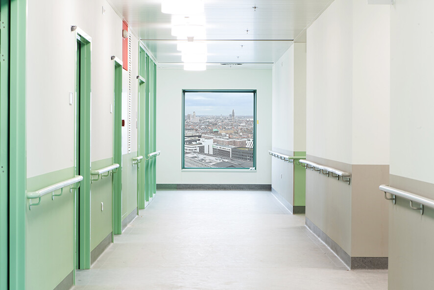 Die Plattenlösung für Reinraumoberflächen und Innenwandverkleidungen in öffentlichen Einrichtungen und Krankenhäusern ist blickdicht, nicht chloriert und nicht bromiert. Die recycelbare Platte bietet eine hohe Festigkeit und Fleckbeständigkeit gegen beispielsweise Blut, Jod oder Abdrücke von Gummidichtungen sowie eine optimale chemische Beständigkeit gegenüber den meisten Reinigungsmitteln.