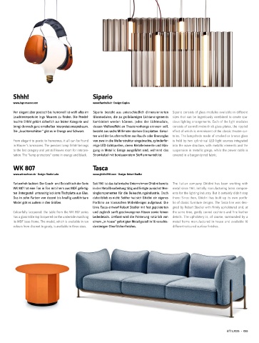 in Maurer’s luminaires. The pendant lamp Shhh! belongs mige LED-Lichtquellen, deren Metallelemente und Hän- into the wave structure, with metallic elements and the