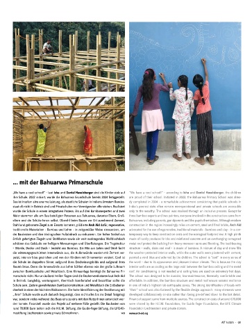Schule sein. Zudem gewährleisten Bambuskonstruktion und Metalldach die Erdbebensi- in one of India’s highest-risk earthquake zones. The strong identification of locals with