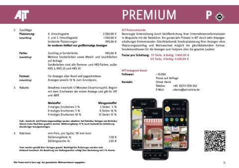 (rabattfähig) 2. und 3. Umschlagseite 1.500,00 € in Absprache mit der Redaktion. Ein ganzes Jahr Präsenz in AIT durch zehn Anzeigen-