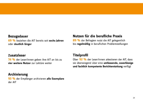 74 % der Leser/innen geben ihre AIT an bis zu Über 92 % der Leser/innen attestieren der AIT, dass