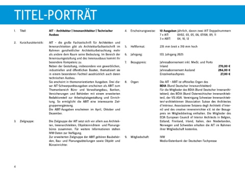 1. Titel: AIT – Architektur | Innenarchitektur | Technischer 4. Erscheinungsweise: 10 Ausgaben jährlich, davon zwei AIT Doppelnummern