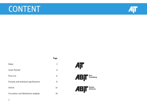 CONTENT Page Dates 3 Cover Portrait 4 Price List 6 Büro Verwaltung Formats and technical specifi cations 9 Online 13 Banken Behörden Circulation and distribution analysis 14 2