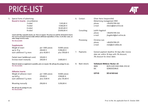 Inserts with flap, Leporello inserts, etc. Price on request. The prices are valid for all bound-in inserts e-mail: jhageloch@ait-online.de