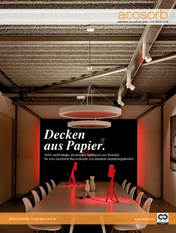 seamless acoustical spray- and plasterwork Decken aus Papier. 100% nachhaltiger akustischer Spritzputz von Acosorb für eine excellente Raumakustik und absolute Gestaltungsfreiheit. Muster bestellen: muster@acosorb.de www.acosorb.de