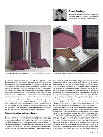 presse als Ofen – mit Erfolg: Der lose Stoff verwandelte sich in eine glatt gespannte Flä- flächen. Sie wurden als modulares Rahmensystem konzipiert, das eine Anpassung der