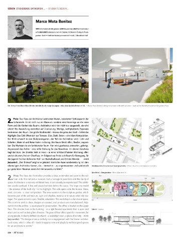 Der Entwurf von Marco Mota Benitez besticht durch mutige Lösungen – etwa dem Basketballcourt im EG. • Marco Mota Benitez’s design impresses with bold solutions – such as the basketball court on the ground floor.