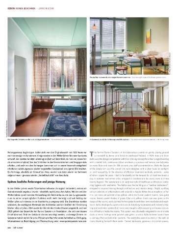 erhaltenen beziehungsweise wieder hergestellten Gebäudeteil ein eigenes Bild machen. of the sanatorium and the overall site were designed with a clear focus on sunlight,